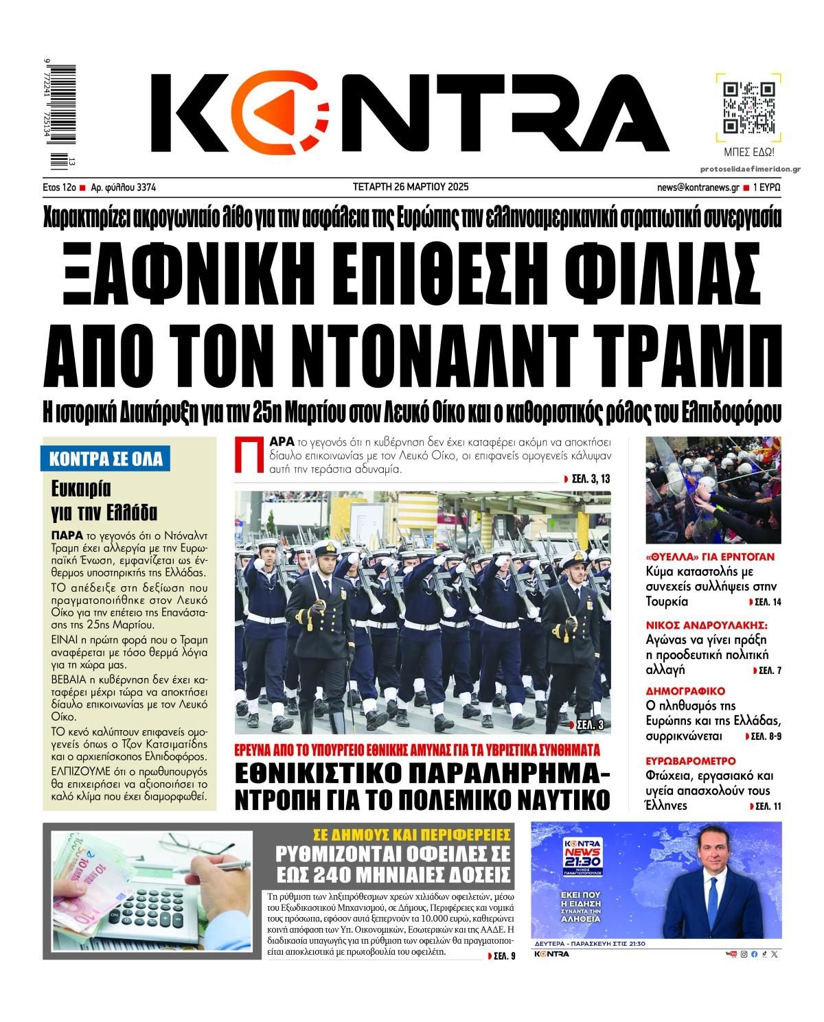 Διαβάστε το πρωτοσέλιδο της εφημερίδας Kontra News