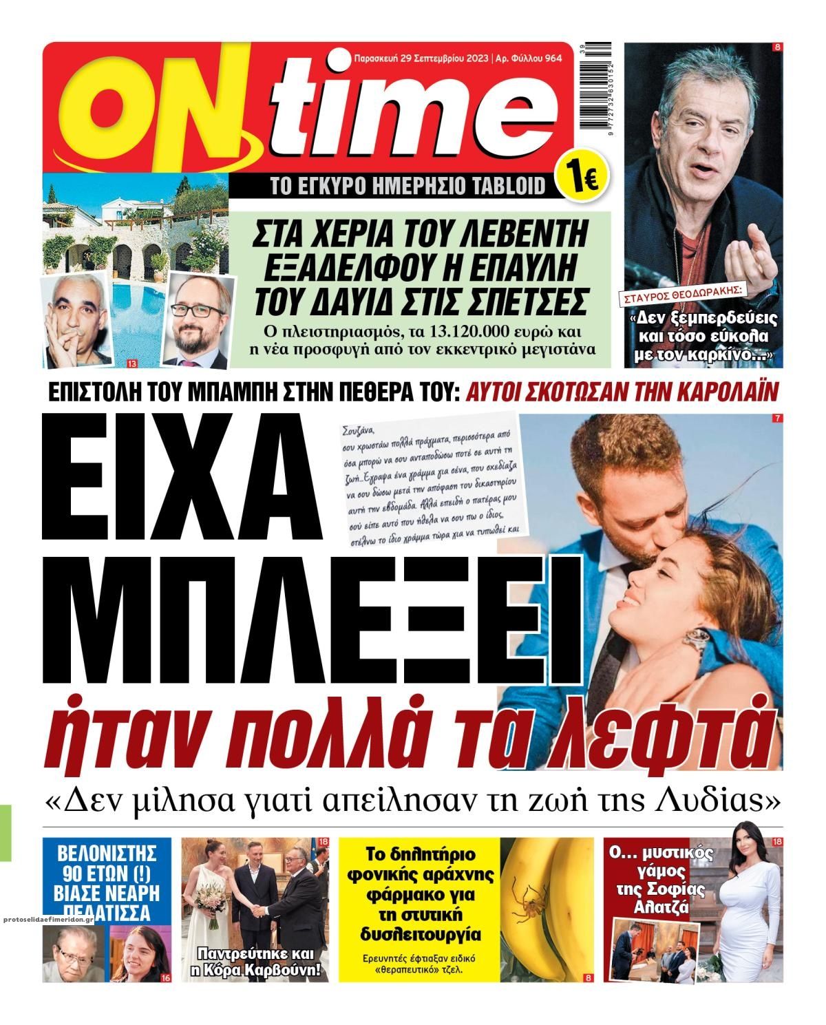 Διαβάστε το πρωτοσέλιδο της εφημερίδας On time