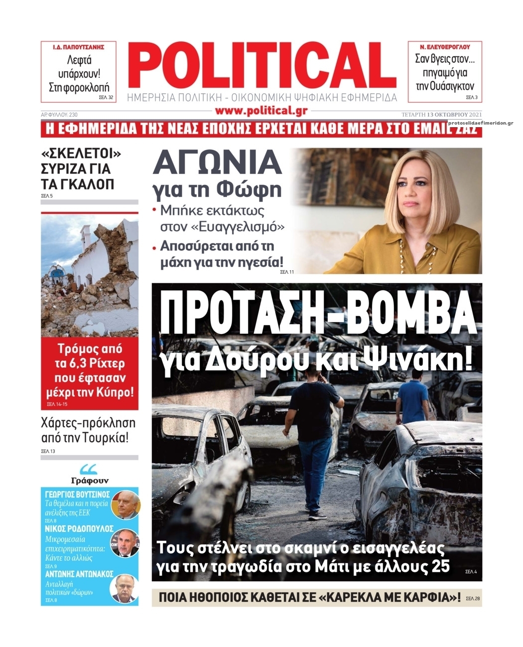Διαβάστε το πρωτοσέλιδο της εφημερίδας Political