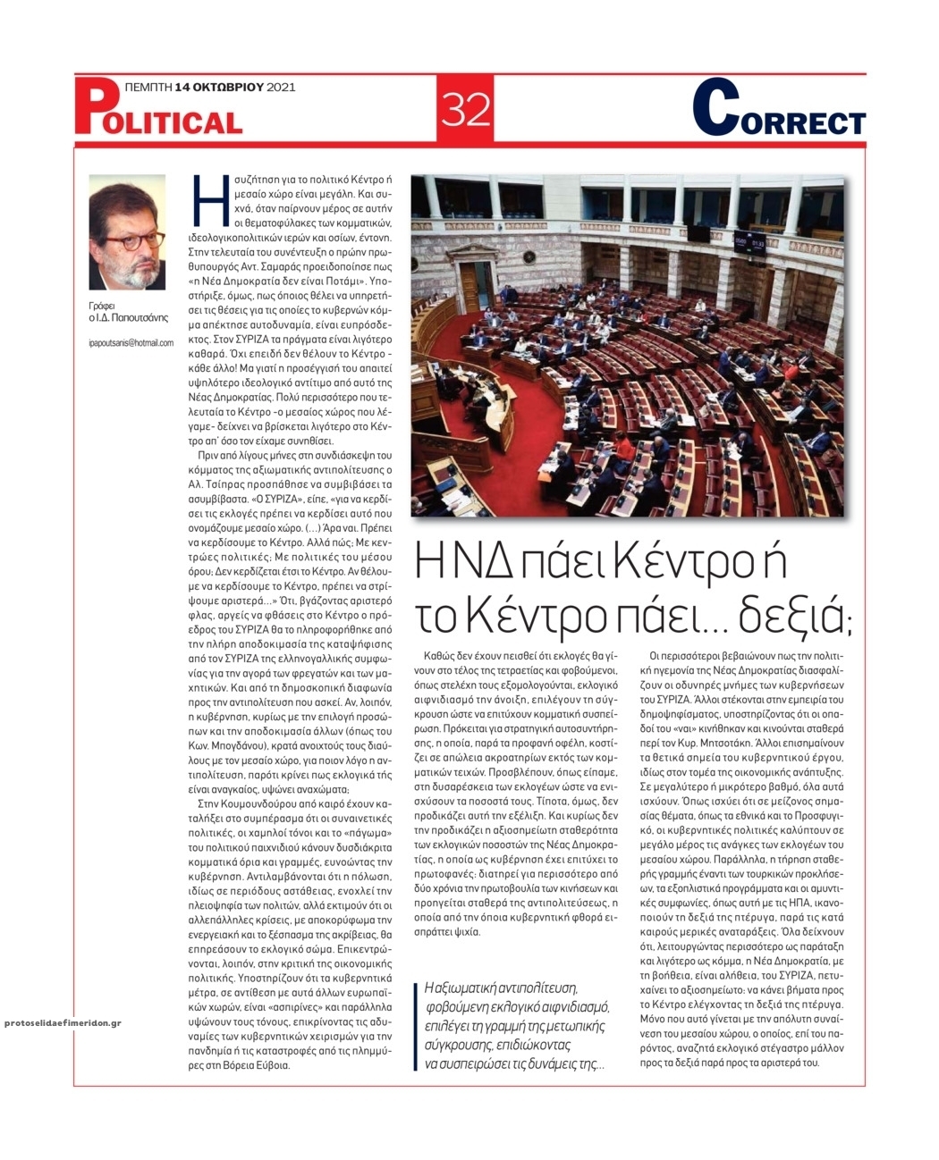 Διαβάστε το πρωτοσέλιδο της εφημερίδας Political
