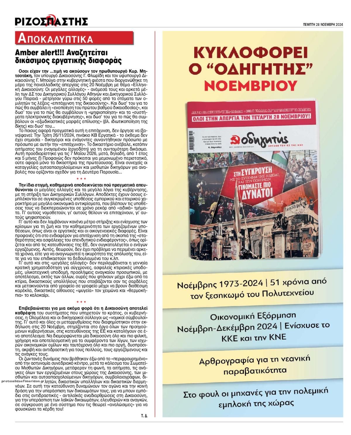 Σε αυτή τη σελίδα θα βρείτε το πρωτοσέλιδο της εφημερίδας Ριζοσπάστης που κυκλοφόρησε Πέμπτη 28 Νοεμβρίου 2024. Για να διαβάσετε το πρωτοσέλιδο της εφημερίδας Ριζοσπάστης σε μεγαλύτερο μέγεθος κρατήστε το ποντίκι πατημένο πάνω στο μεγάλο πρωτοσέλιδο Ριζοσπάστης και σύρετε προς την κατέυθυνση που θέλετε. Για να δείτε το ιστορικό αρχείο της εφημερίδας Ριζοσπάστης πατήστε εδώ ή πατήστε από μενού "Αρχείο" και επιλέξτε από τη λίστα Ριζοσπάστης.
