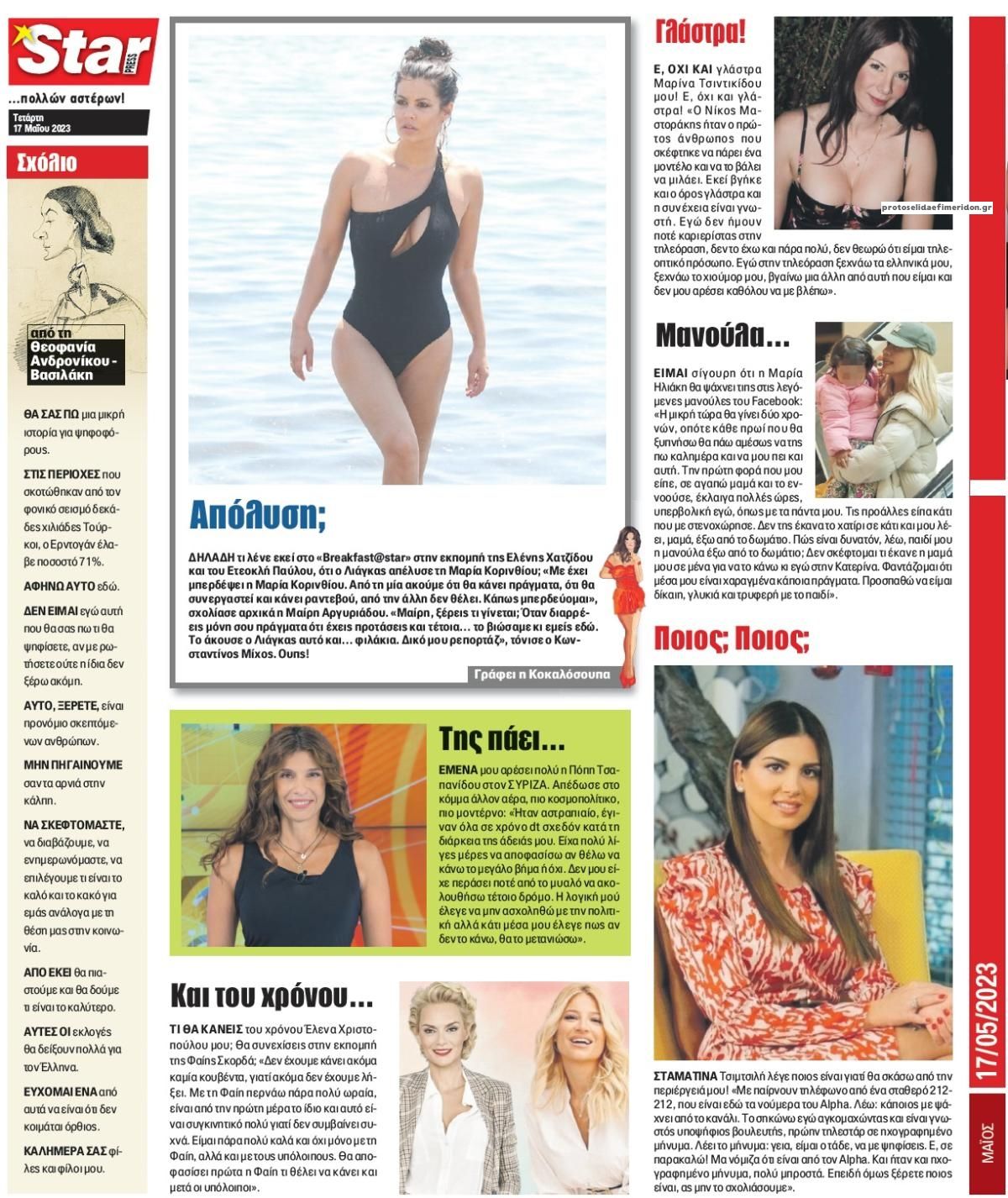 Σε αυτή τη σελίδα θα βρείτε το πρωτοσέλιδο της εφημερίδας Star Press που κυκλοφόρησε Τετάρτη 17 Μαΐου 2023. Για να διαβάσετε το πρωτοσέλιδο της εφημερίδας Star Press σε μεγαλύτερο μέγεθος κρατήστε το ποντίκι πατημένο πάνω στο μεγάλο πρωτοσέλιδο Star Press και σύρετε προς την κατέυθυνση που θέλετε. Για να δείτε το ιστορικό αρχείο της εφημερίδας Star Press πατήστε εδώ ή πατήστε από μενού "Αρχείο" και επιλέξτε από τη λίστα Star Press.