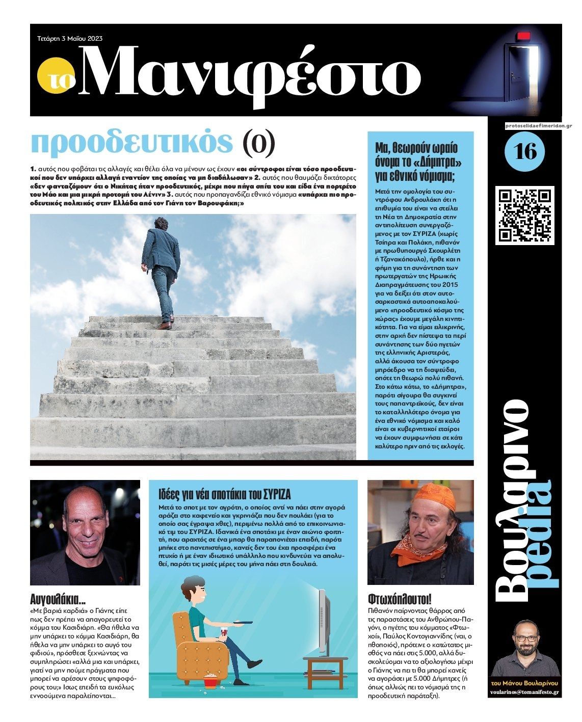 Διαβάστε το πρωτοσέλιδο της εφημερίδας Το Manifesto