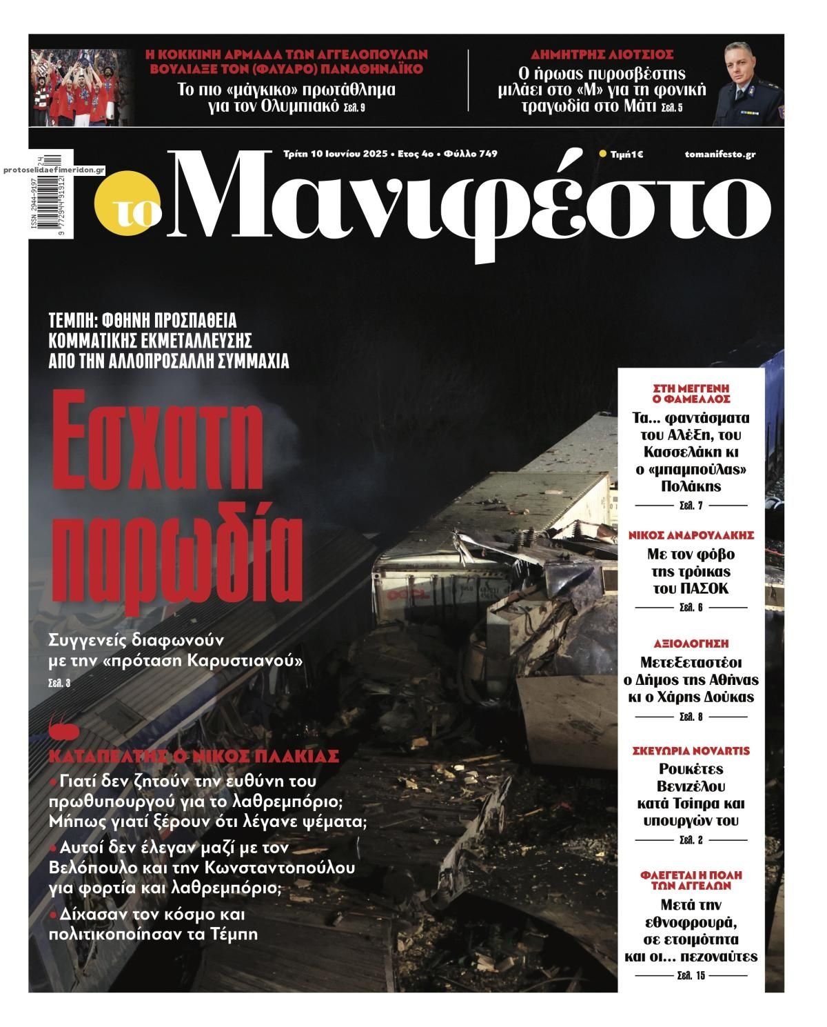 Διαβάστε το πρωτοσέλιδο της εφημερίδας Το Manifesto