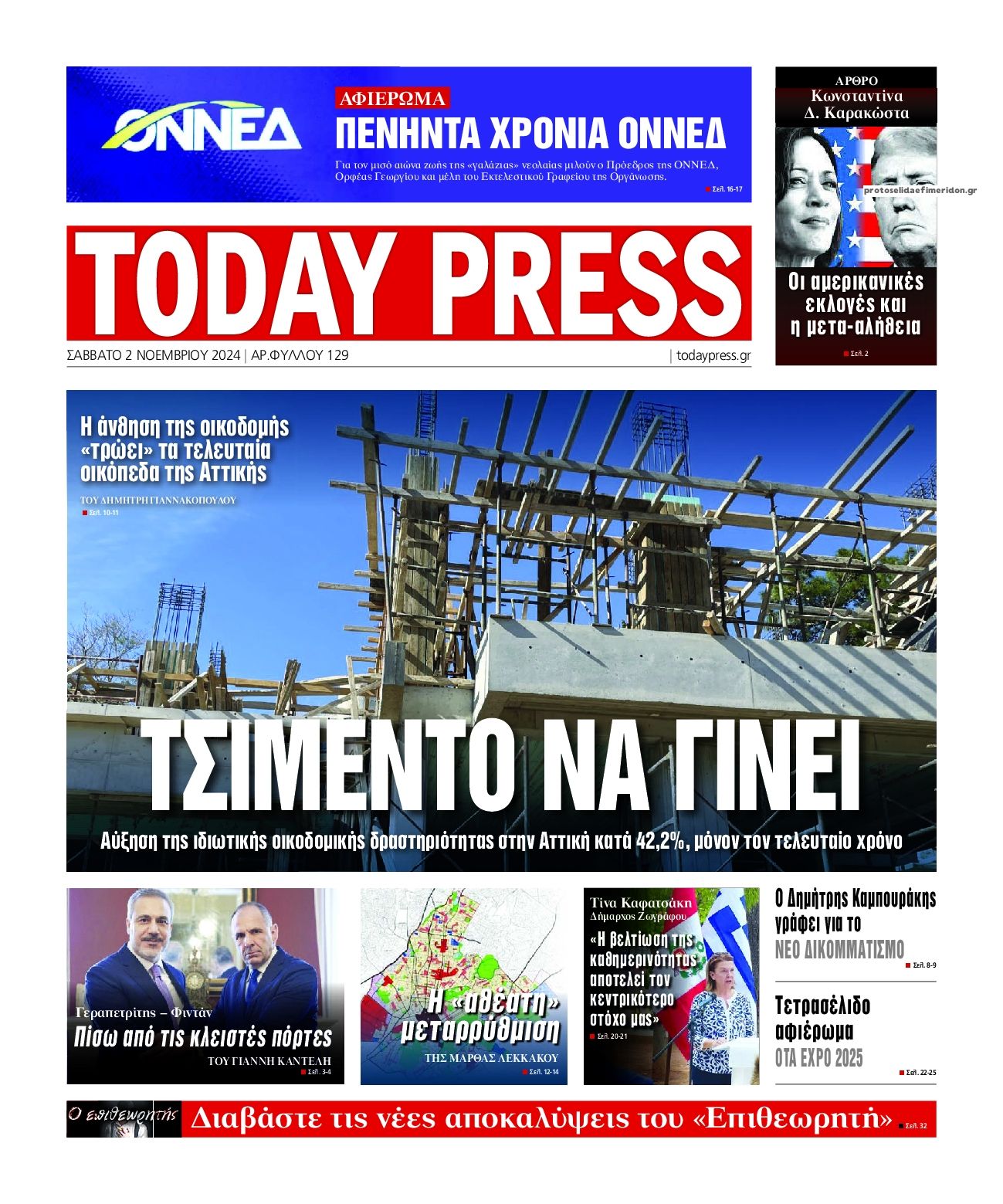 Διαβάστε το πρωτοσέλιδο της εφημερίδας Today Free Press