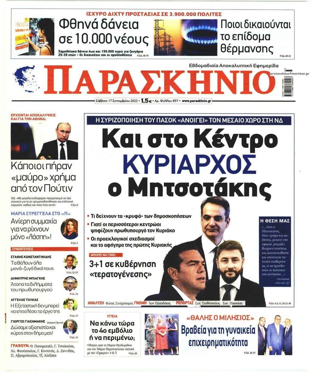 Σε αυτή τη σελίδα θα βρείτε το πρωτοσέλιδο της εφημερίδας Το Παρασκήνιο που κυκλοφόρησε Σάββατο 17 Σεπτεμβρίου 2022. Για να διαβάσετε το πρωτοσέλιδο της εφημερίδας Το Παρασκήνιο σε μεγαλύτερο μέγεθος κρατήστε το ποντίκι πατημένο πάνω στο μεγάλο πρωτοσέλιδο Το Παρασκήνιο και σύρετε προς την κατέυθυνση που θέλετε. Για να δείτε το ιστορικό αρχείο της εφημερίδας Το Παρασκήνιο πατήστε εδώ ή πατήστε από μενού "Αρχείο" και επιλέξτε από τη λίστα Το Παρασκήνιο.