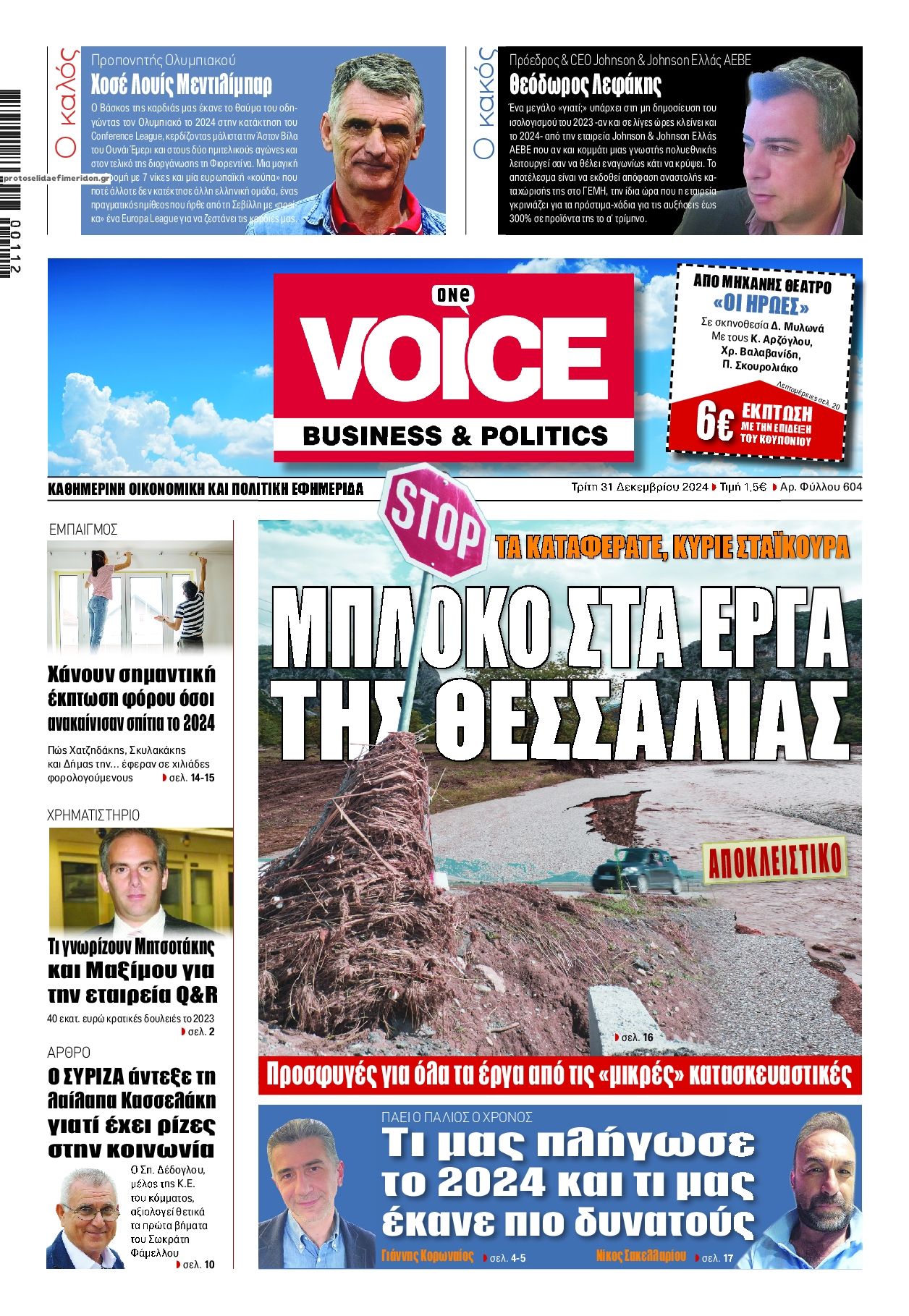 Διαβάστε το πρωτοσέλιδο της εφημερίδας Finance and Markets Voice