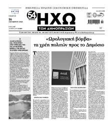 Σε αυτή τη σελίδα θα βρείτε αρχείο από το 2013 για το πρωτοσέλιδο της εφημερίδας Ηχώ. Αναζητήστε παλαιότερα πρωτοσέλιδα της εφημερίδας Ηχώ αλλάζωντας έτος, μήνα και ημέρα. Για να διαβάσετε το πρωτοσέλιδο της εφημερίδας Ηχώ σε μεγαλύτερο μέγεθος πατήστε στο πρωτοσέλιδο και θα ανοίξει νέα σελίδα με το πρωτοσέλιδο Ηχώ σε μεγαλύτερη ανάλυση.