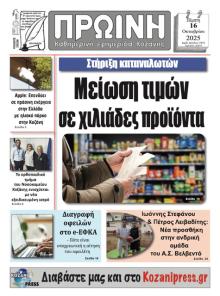 ΠΡΩΙΝΗ ΚΟΖΑΝΗΣ αρχείο πρωτοσέλιδων και οπισθόφυλλων από το 2013