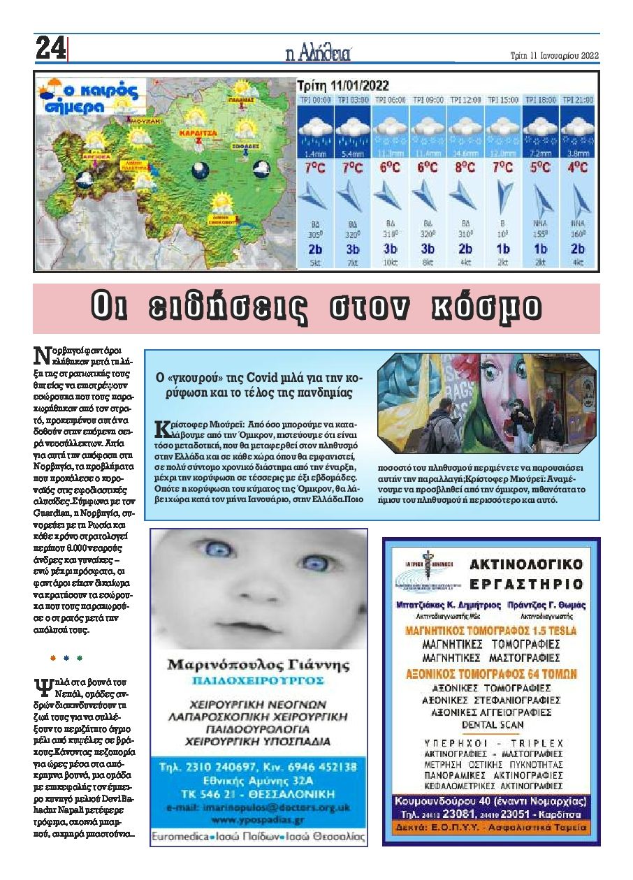 Διαβάστε το πρωτοσέλιδο της εφημερίδας Αλήθεια της Καρδίτσας