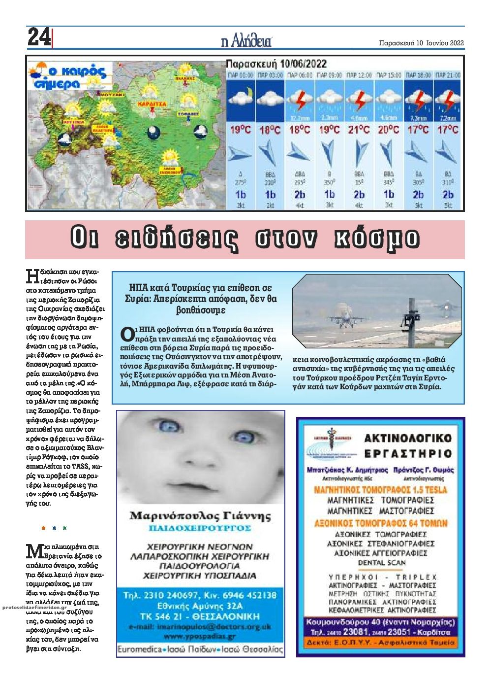 Σε αυτή τη σελίδα θα βρείτε το πρωτοσέλιδο της εφημερίδας Αλήθεια της Καρδίτσας που κυκλοφόρησε Παρασκευή 10 Ιουνίου 2022. Για να διαβάσετε το πρωτοσέλιδο της εφημερίδας Αλήθεια της Καρδίτσας σε μεγαλύτερο μέγεθος κρατήστε το ποντίκι πατημένο πάνω στο μεγάλο πρωτοσέλιδο Αλήθεια της Καρδίτσας και σύρετε προς την κατέυθυνση που θέλετε. Για να δείτε το ιστορικό αρχείο της εφημερίδας Αλήθεια της Καρδίτσας πατήστε εδώ ή πατήστε από μενού "Αρχείο" και επιλέξτε από τη λίστα Αλήθεια της Καρδίτσας.