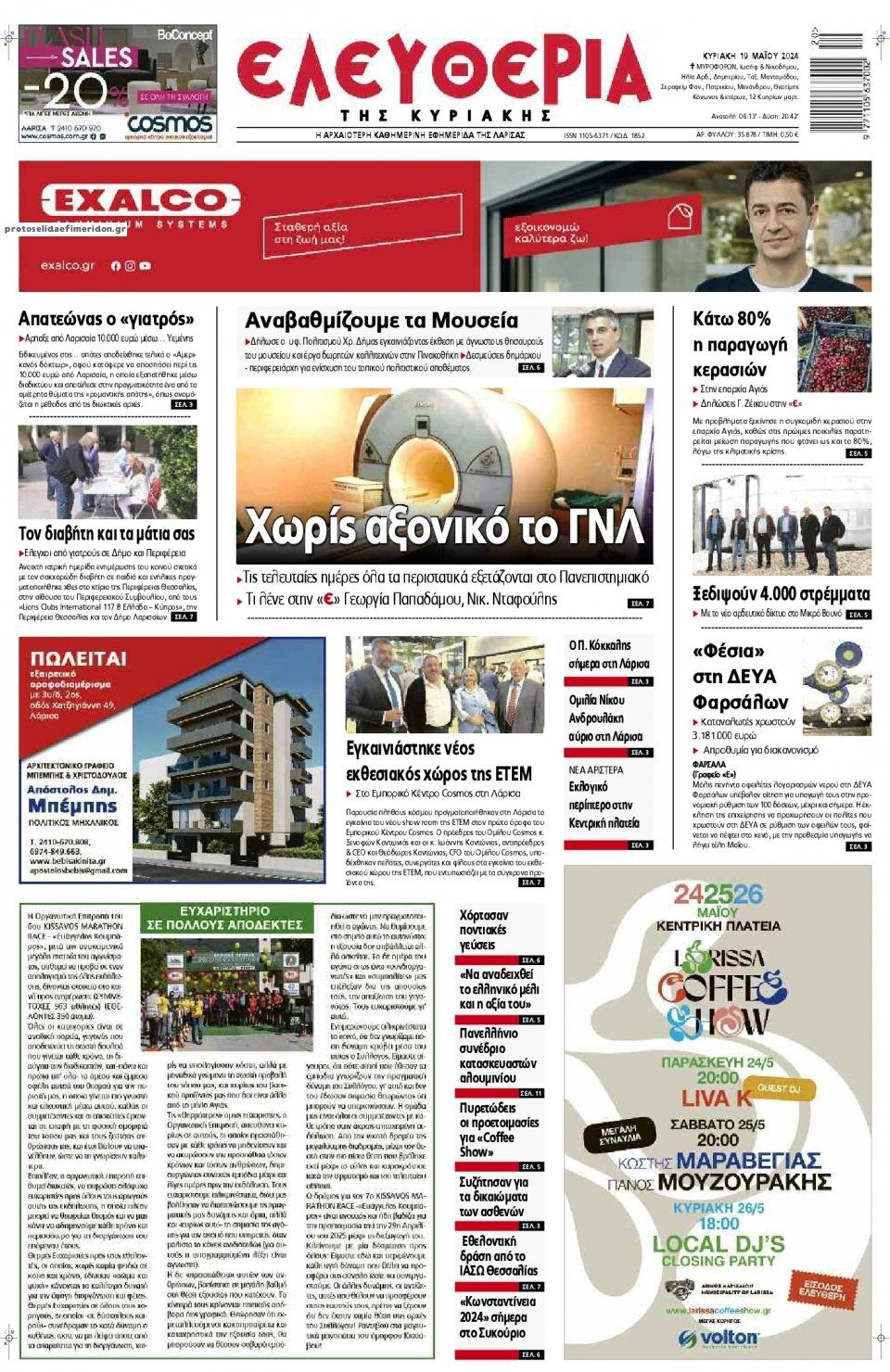 Διαβάστε το πρωτοσέλιδο της εφημερίδας Ελευθερία Λάρισσας