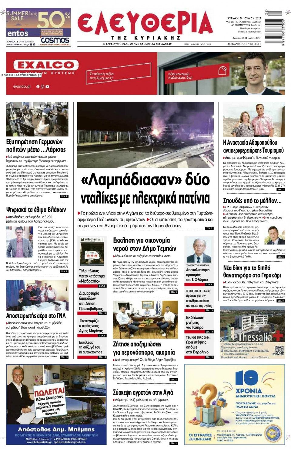 Διαβάστε το πρωτοσέλιδο της εφημερίδας Ελευθερία Λάρισσας