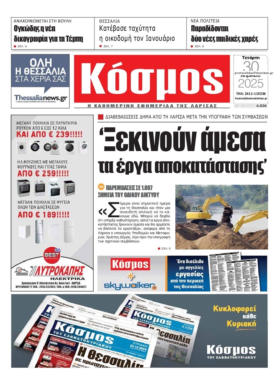 Διαβάστε το πρωτοσέλιδο της εφημερίδας Κόσμος