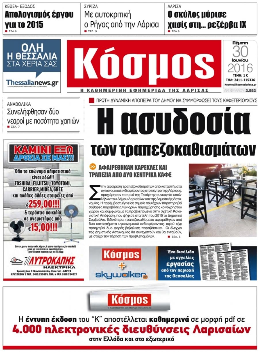 Διαβάστε το πρωτοσέλιδο της εφημερίδας Κόσμος