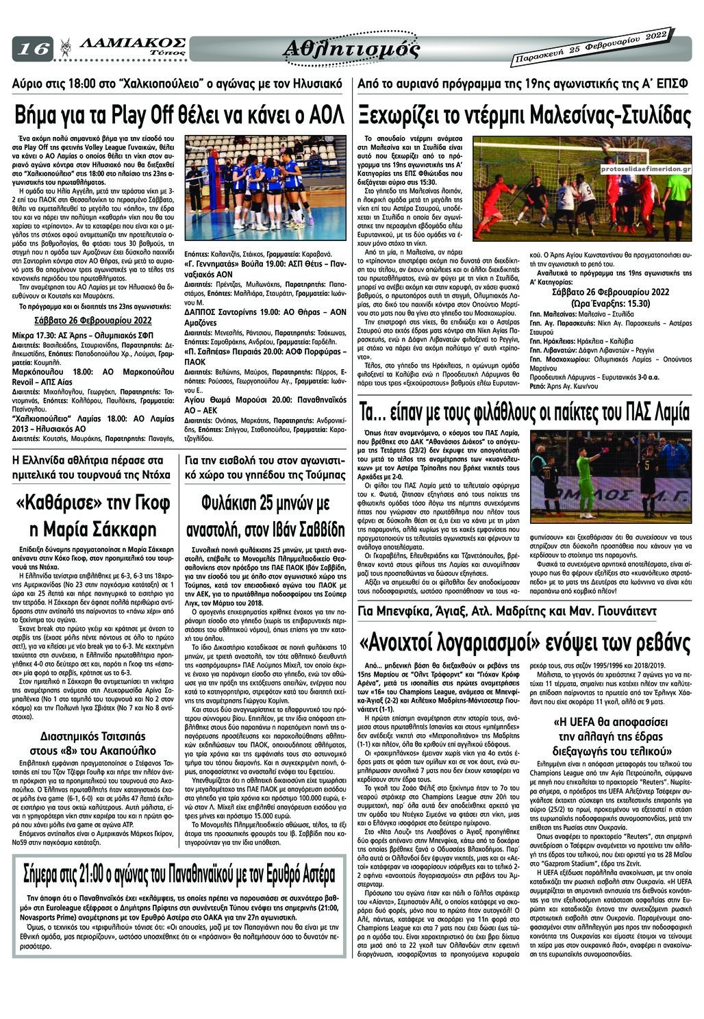 Διαβάστε το πρωτοσέλιδο της εφημερίδας Λαμιακός Τύπος