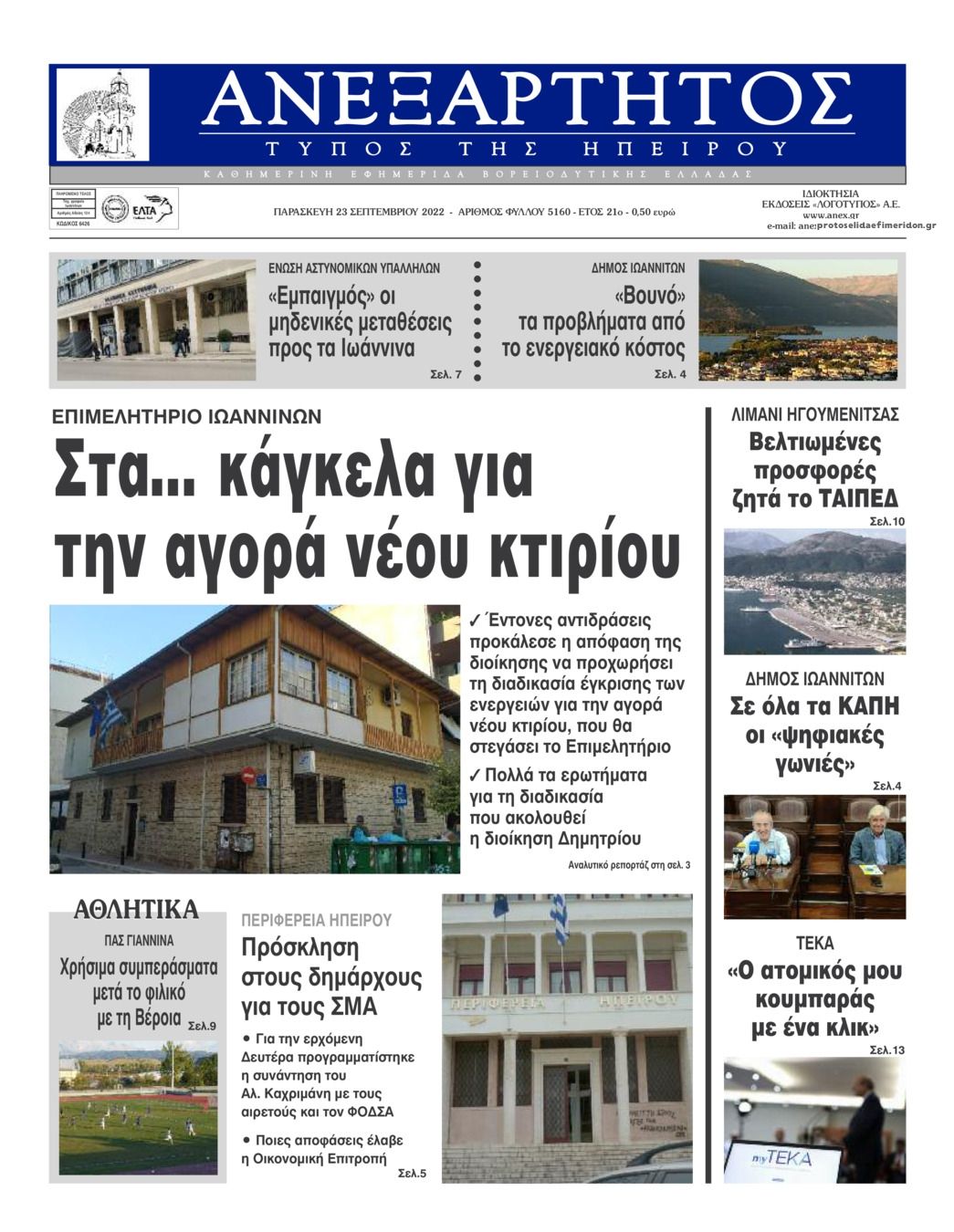 Διαβάστε το πρωτοσέλιδο της εφημερίδας Ανεξάρτητος Ηπείρου
