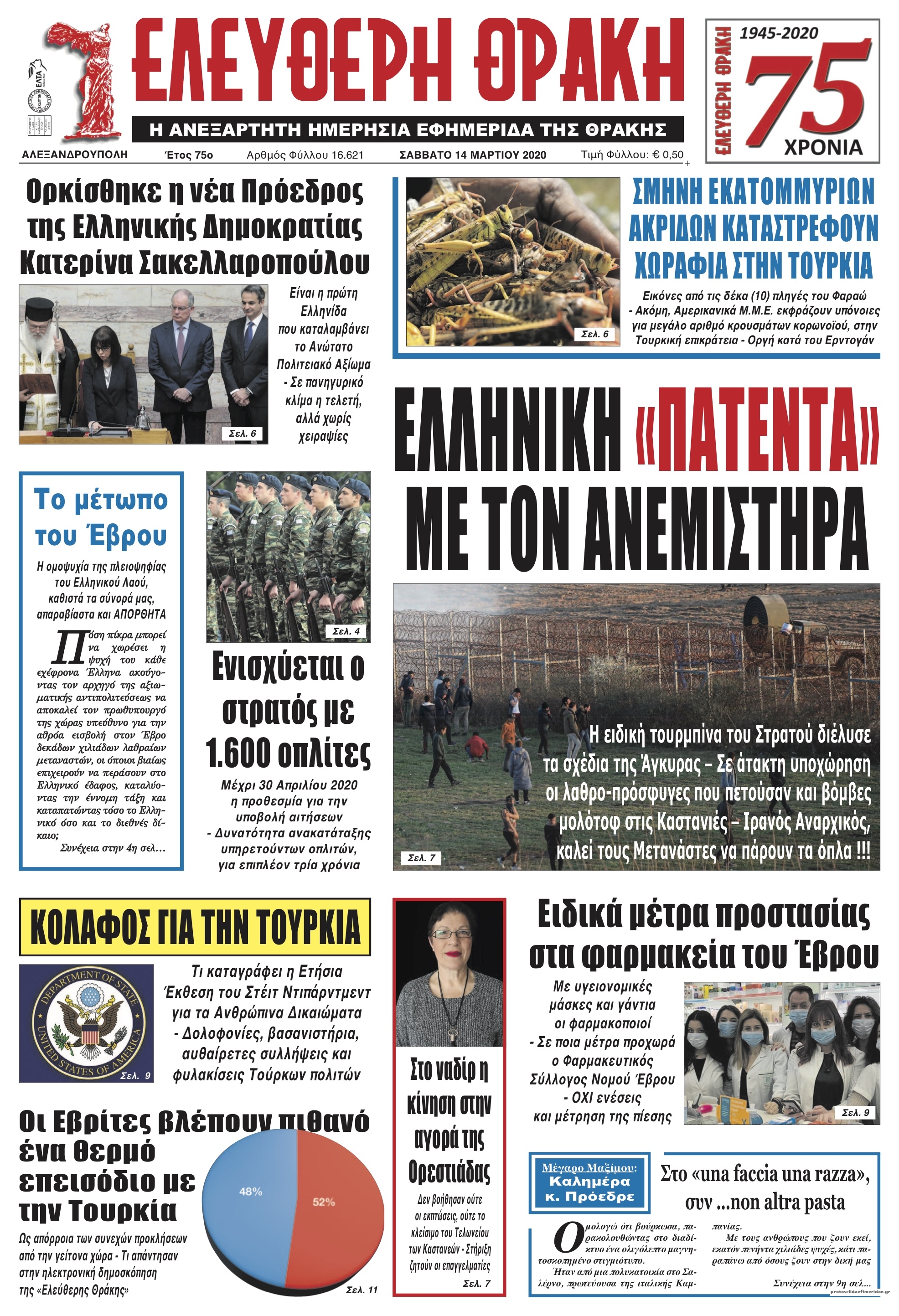 Διαβάστε το πρωτοσέλιδο της εφημερίδας Ελεύθερη Θράκη