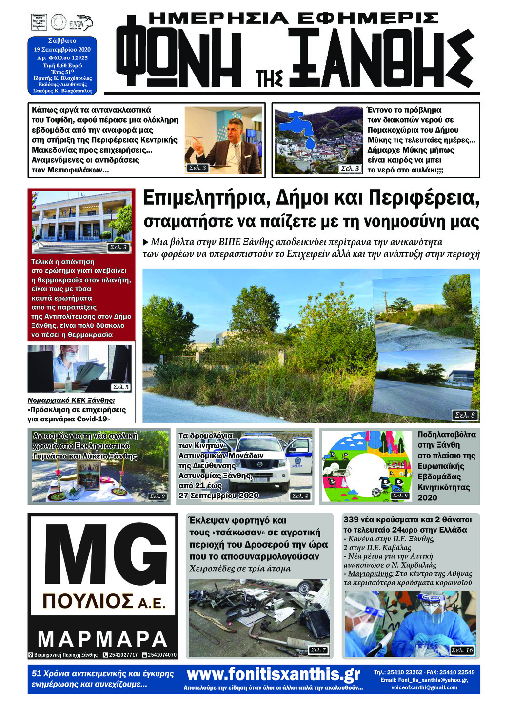 Διαβάστε το πρωτοσέλιδο της εφημερίδας Φωνή της Ξάνθης