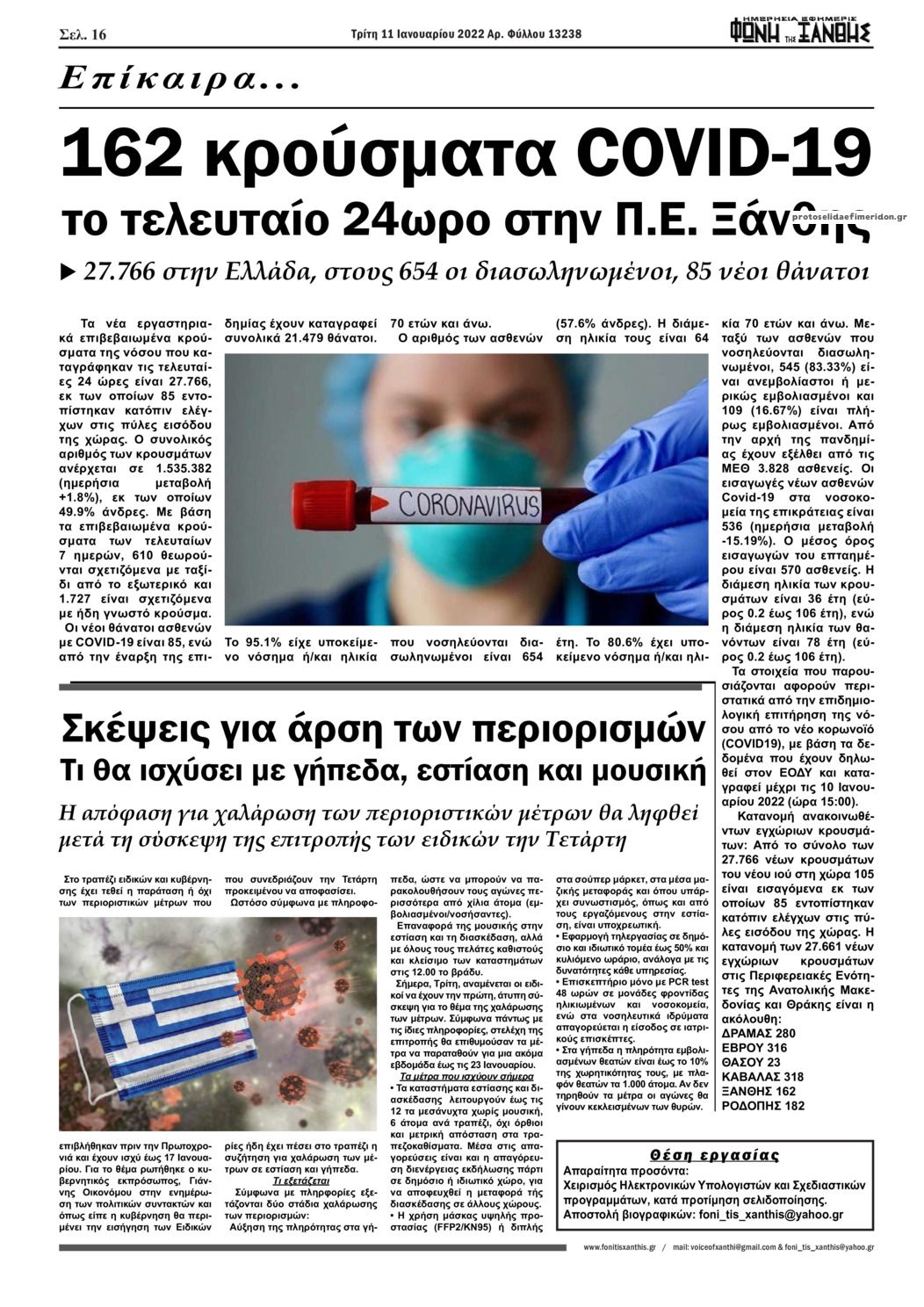 Σε αυτή τη σελίδα θα βρείτε το πρωτοσέλιδο της εφημερίδας Φωνή της Ξάνθης που κυκλοφόρησε Τρίτη 11 Ιανoυαρίου 2022. Για να διαβάσετε το πρωτοσέλιδο της εφημερίδας Φωνή της Ξάνθης σε μεγαλύτερο μέγεθος κρατήστε το ποντίκι πατημένο πάνω στο μεγάλο πρωτοσέλιδο Φωνή της Ξάνθης και σύρετε προς την κατέυθυνση που θέλετε. Για να δείτε το ιστορικό αρχείο της εφημερίδας Φωνή της Ξάνθης πατήστε εδώ ή πατήστε από μενού "Αρχείο" και επιλέξτε από τη λίστα Φωνή της Ξάνθης.