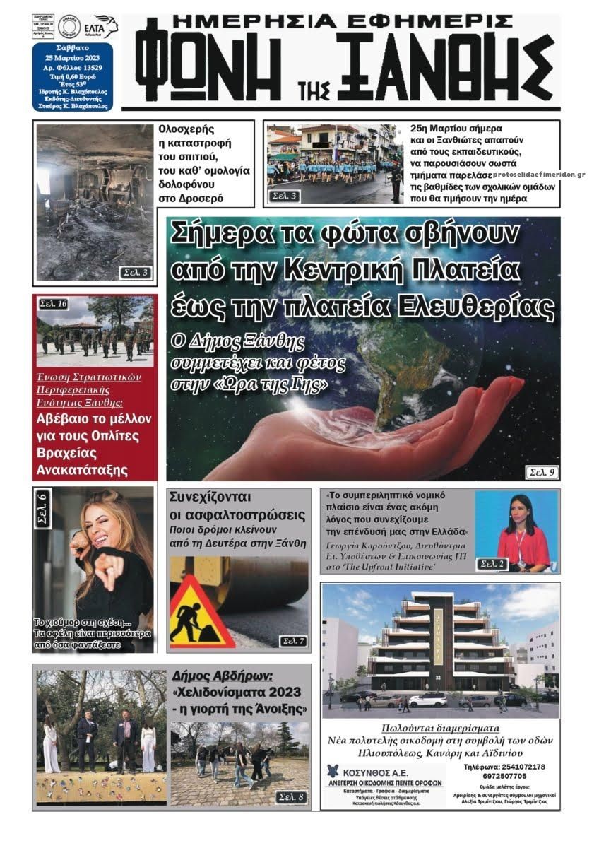 Διαβάστε το πρωτοσέλιδο της εφημερίδας Φωνή της Ξάνθης