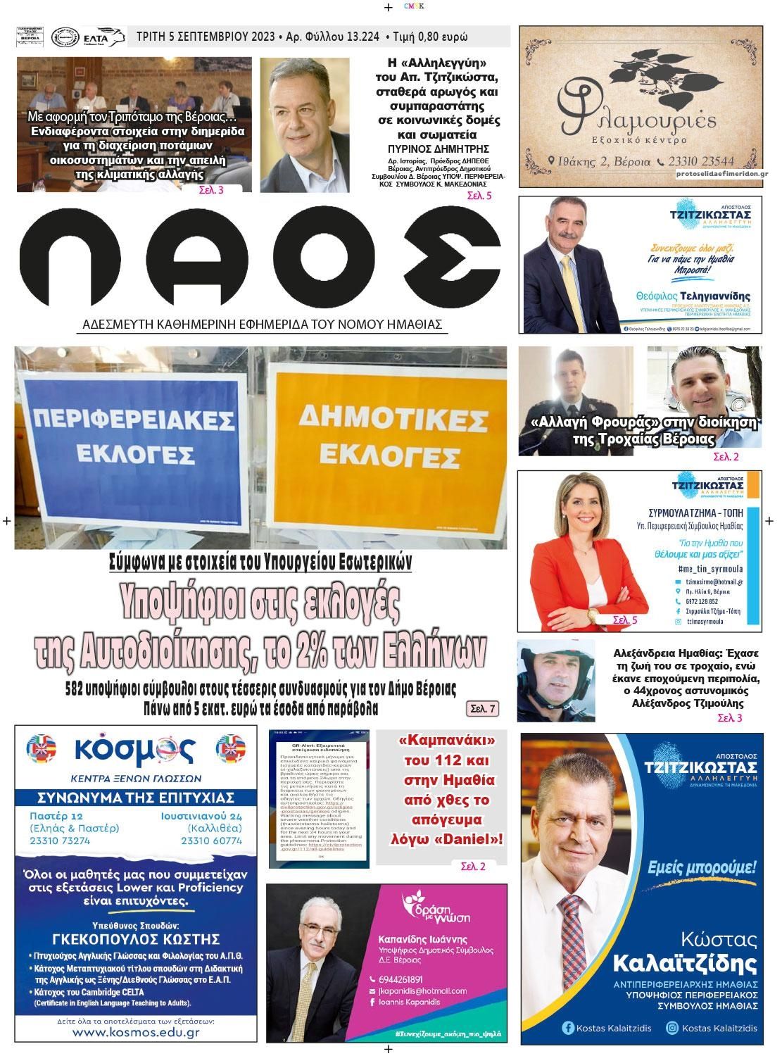 Διαβάστε το πρωτοσέλιδο της εφημερίδας Λαός Βέροιας