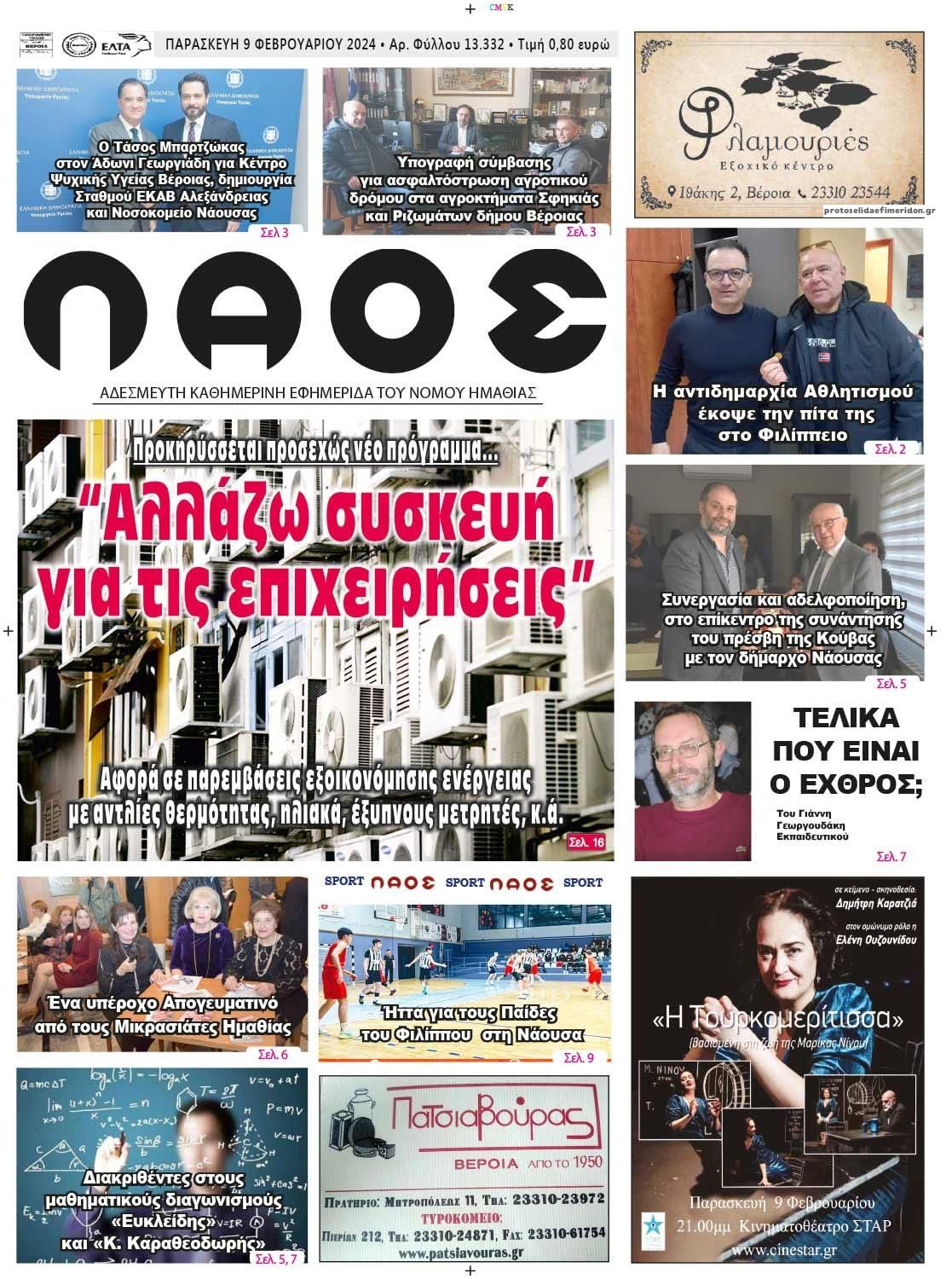 Διαβάστε το πρωτοσέλιδο της εφημερίδας Λαός Βέροιας