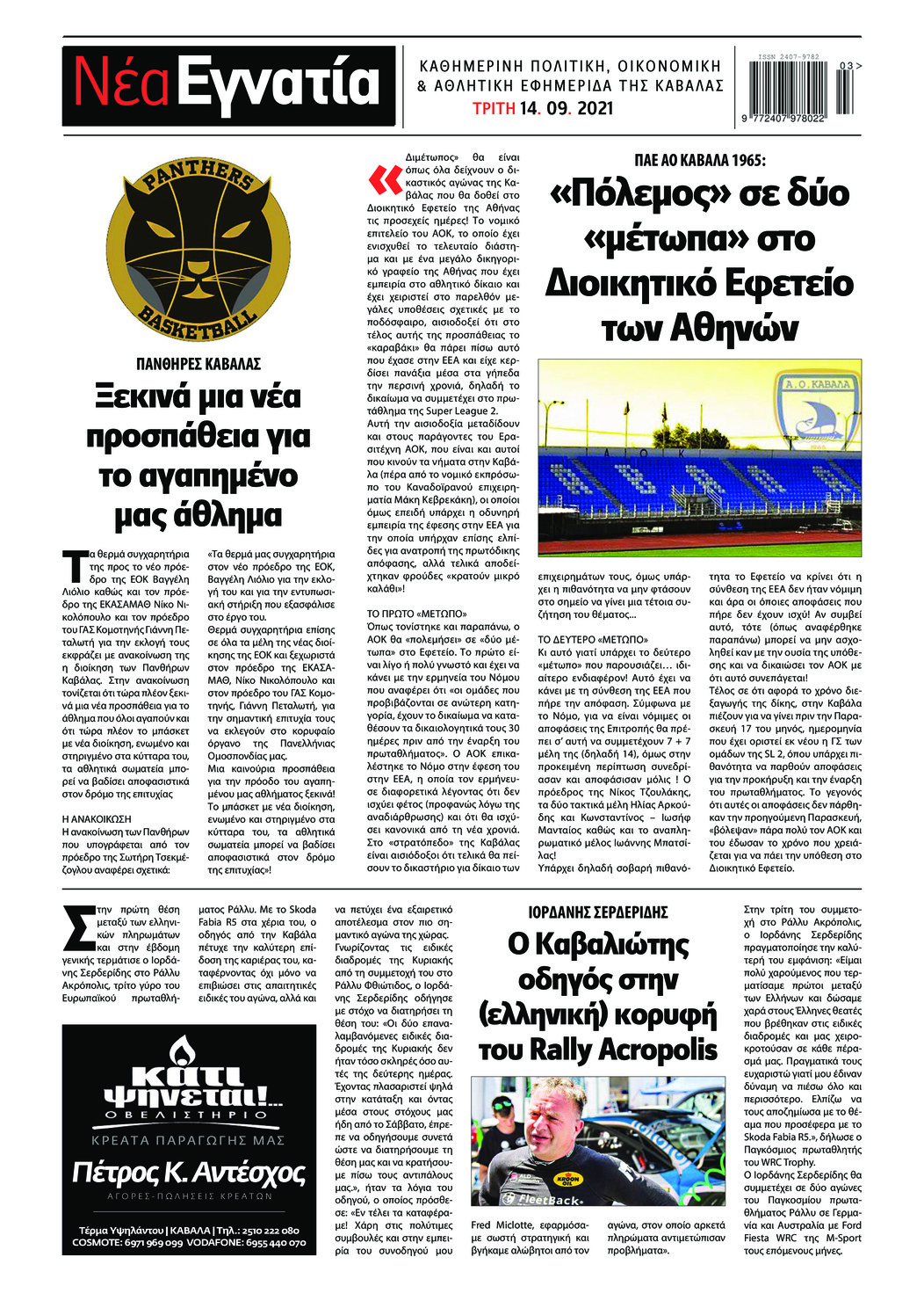 Διαβάστε το πρωτοσέλιδο της εφημερίδας Νέα Εγνατία