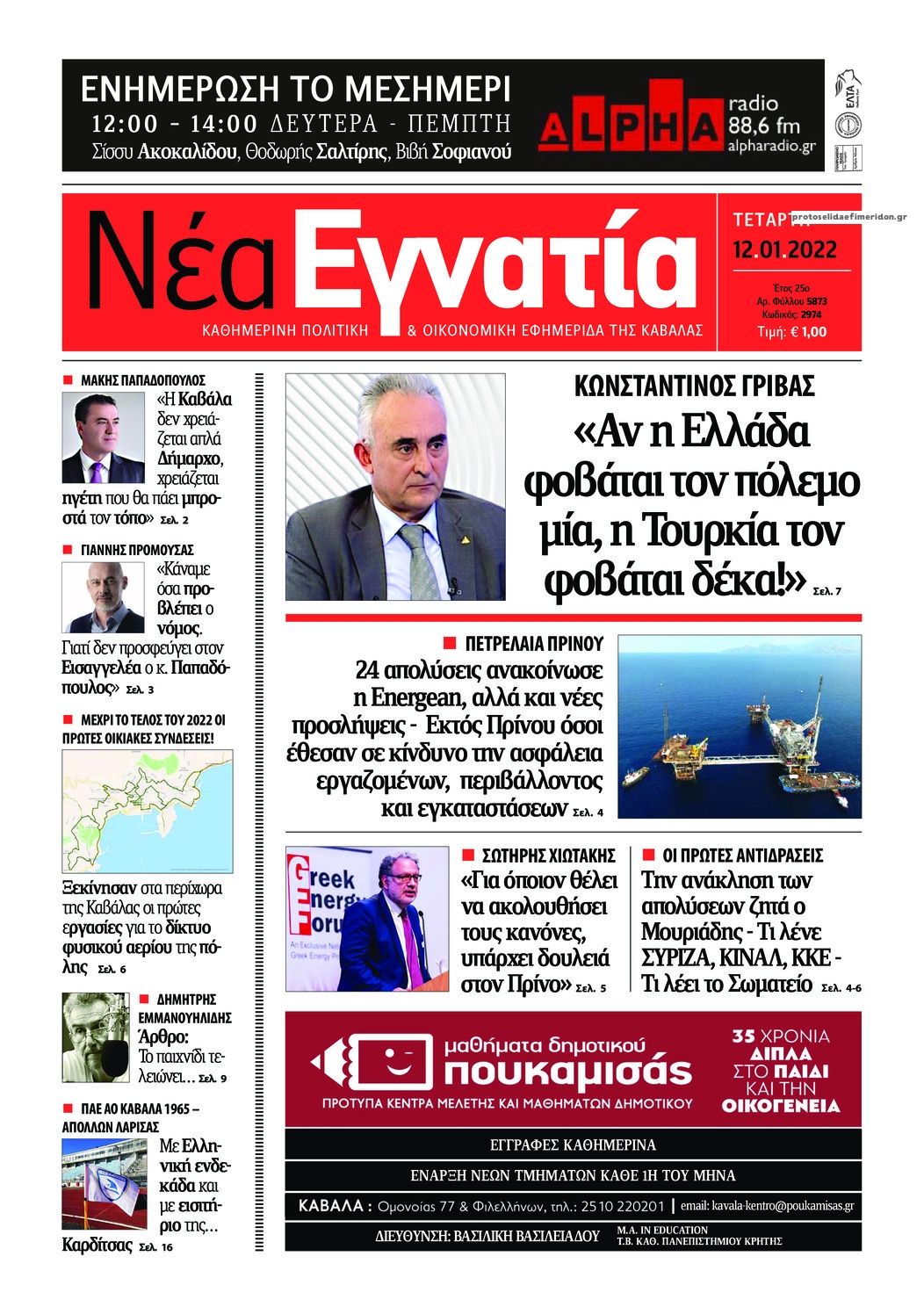 Διαβάστε το πρωτοσέλιδο της εφημερίδας Νέα Εγνατία