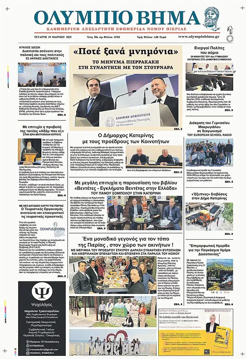 Διαβάστε το πρωτοσέλιδο της εφημερίδας Ολύμπιο Βήμα
