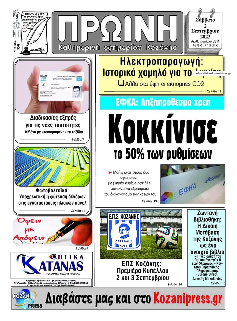 Διαβάστε το πρωτοσέλιδο της εφημερίδας Πρωινή Κοζάνης