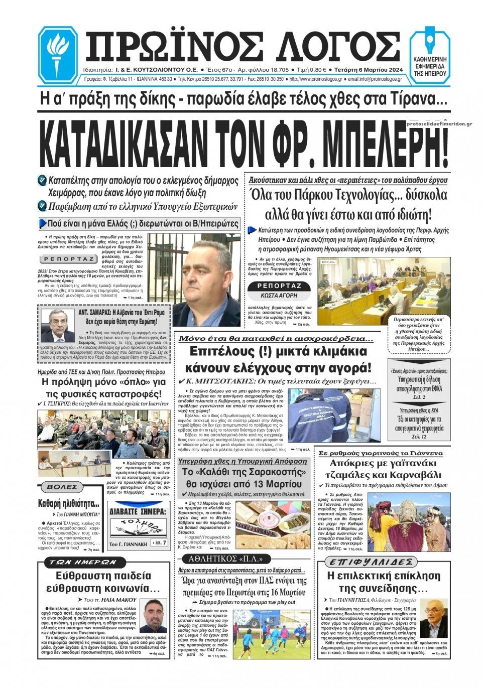 Διαβάστε το πρωτοσέλιδο της εφημερίδας Πρωινός λόγος Ιωαννίνων