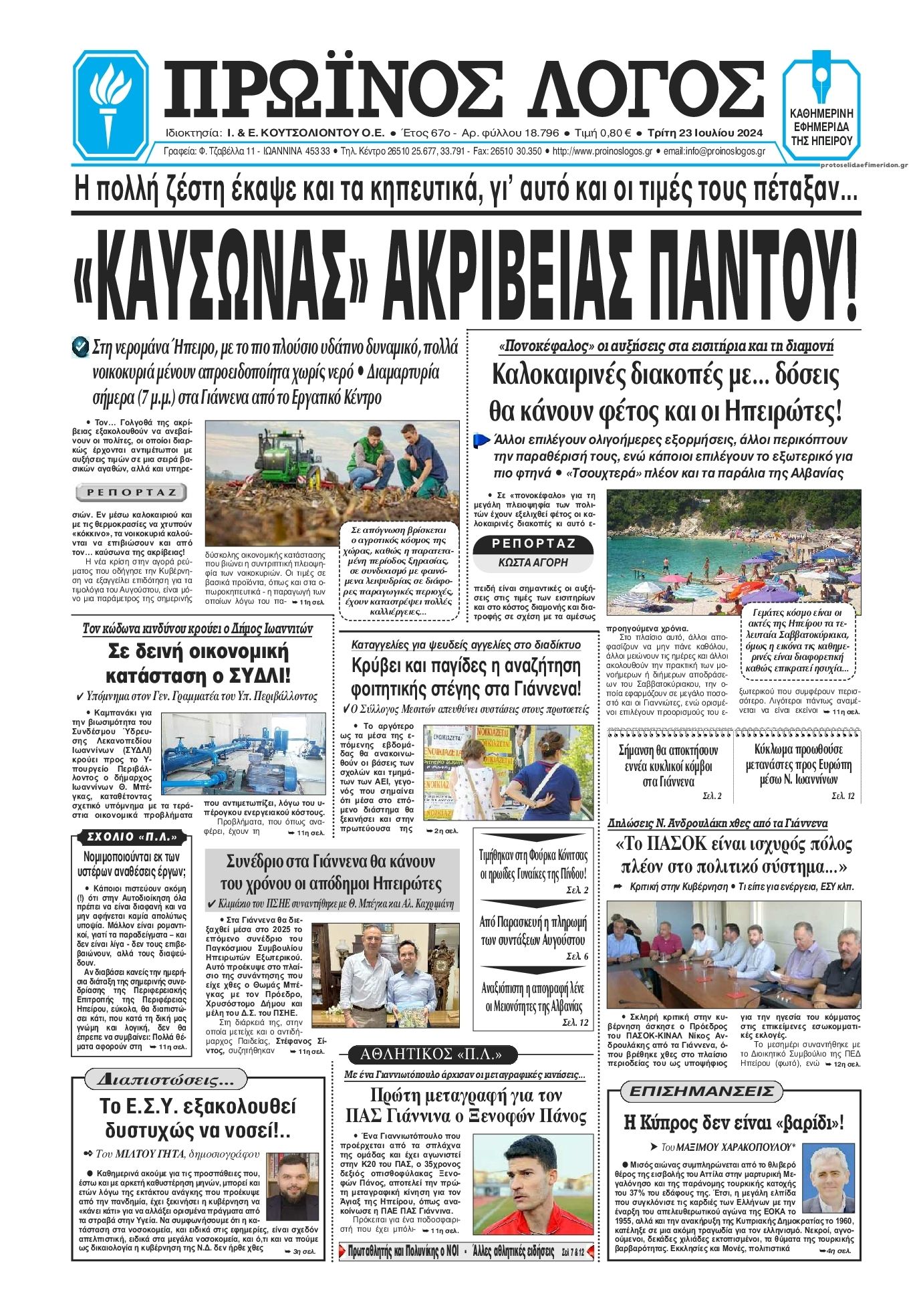 Διαβάστε το πρωτοσέλιδο της εφημερίδας Πρωινός λόγος Ιωαννίνων