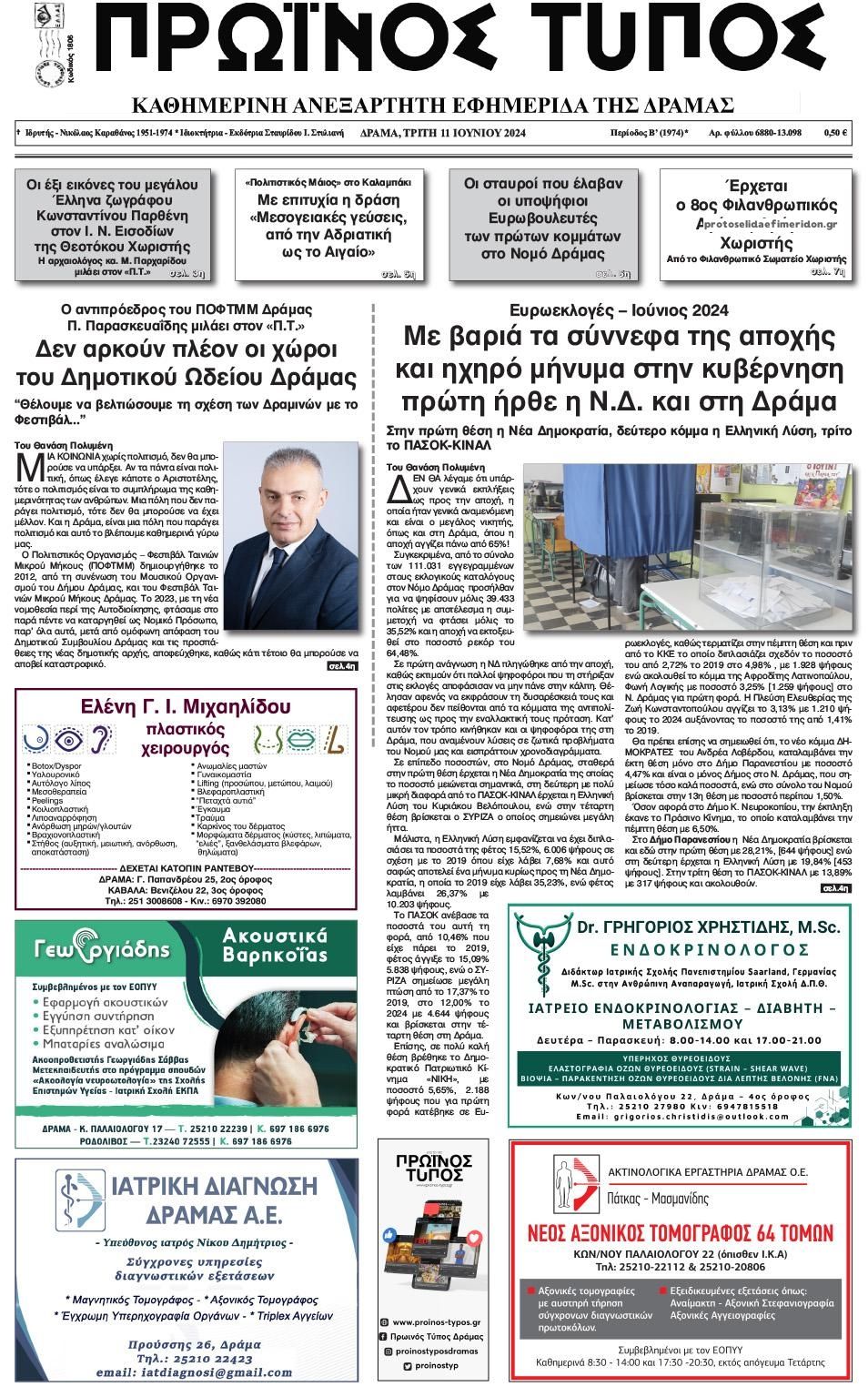 Διαβάστε το πρωτοσέλιδο της εφημερίδας Πρωινός Τύπος Δρ.