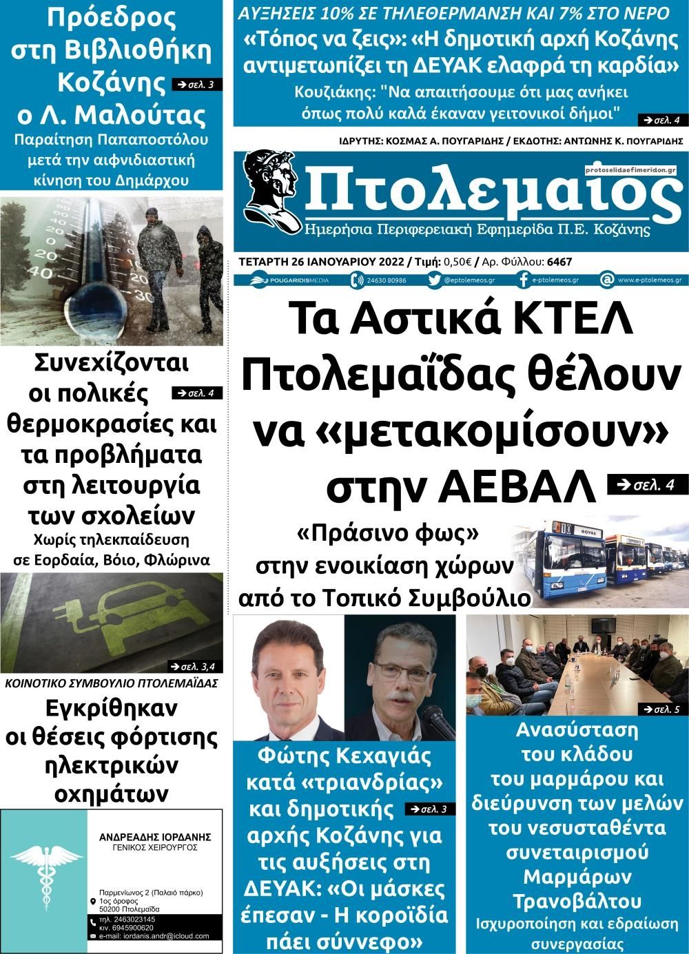 Διαβάστε το πρωτοσέλιδο της εφημερίδας Πτολεμαίος