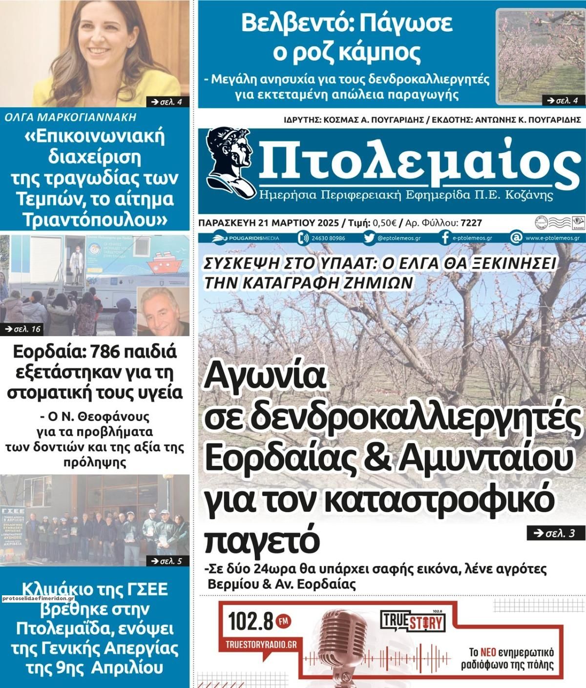 Διαβάστε το πρωτοσέλιδο της εφημερίδας Πτολεμαίος