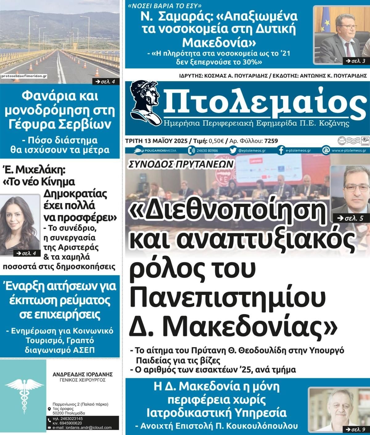 Διαβάστε το πρωτοσέλιδο της εφημερίδας Πτολεμαίος