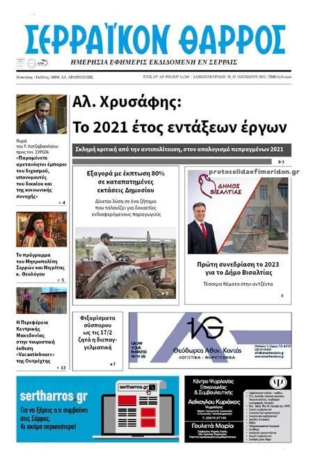 Διαβάστε το πρωτοσέλιδο της εφημερίδας Σερραϊκόν Θάρρος