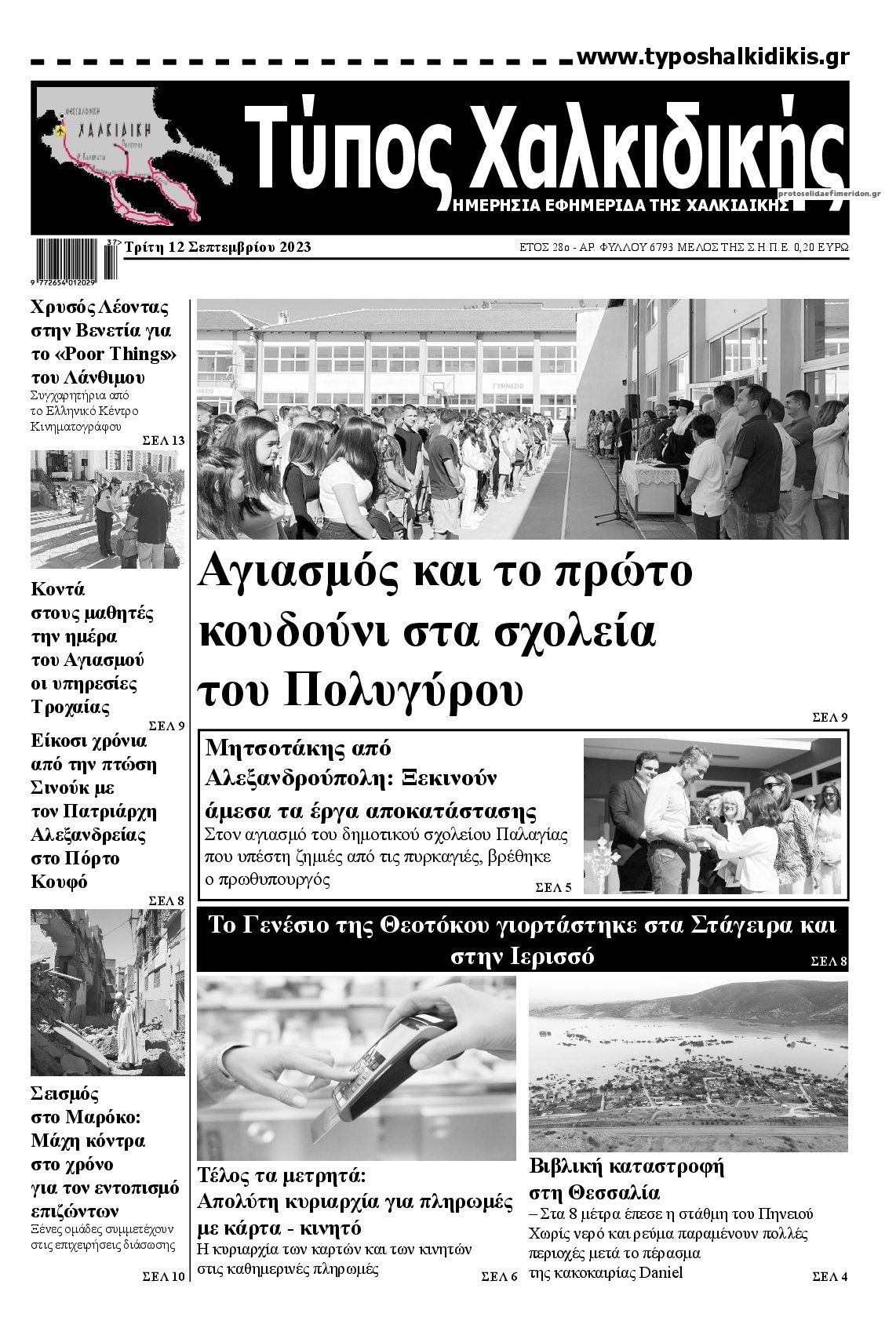 Διαβάστε το πρωτοσέλιδο της εφημερίδας Τύπος Χαλκιδικής