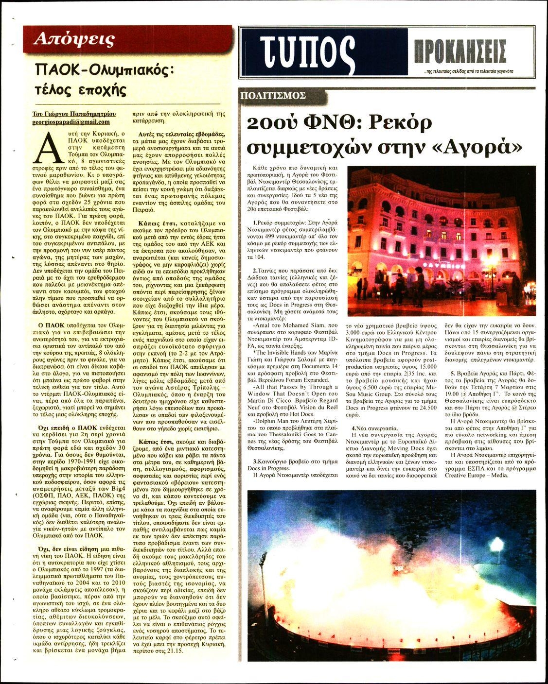 Διαβάστε το πρωτοσέλιδο της εφημερίδας Τύπος Θεσσαλονίκης