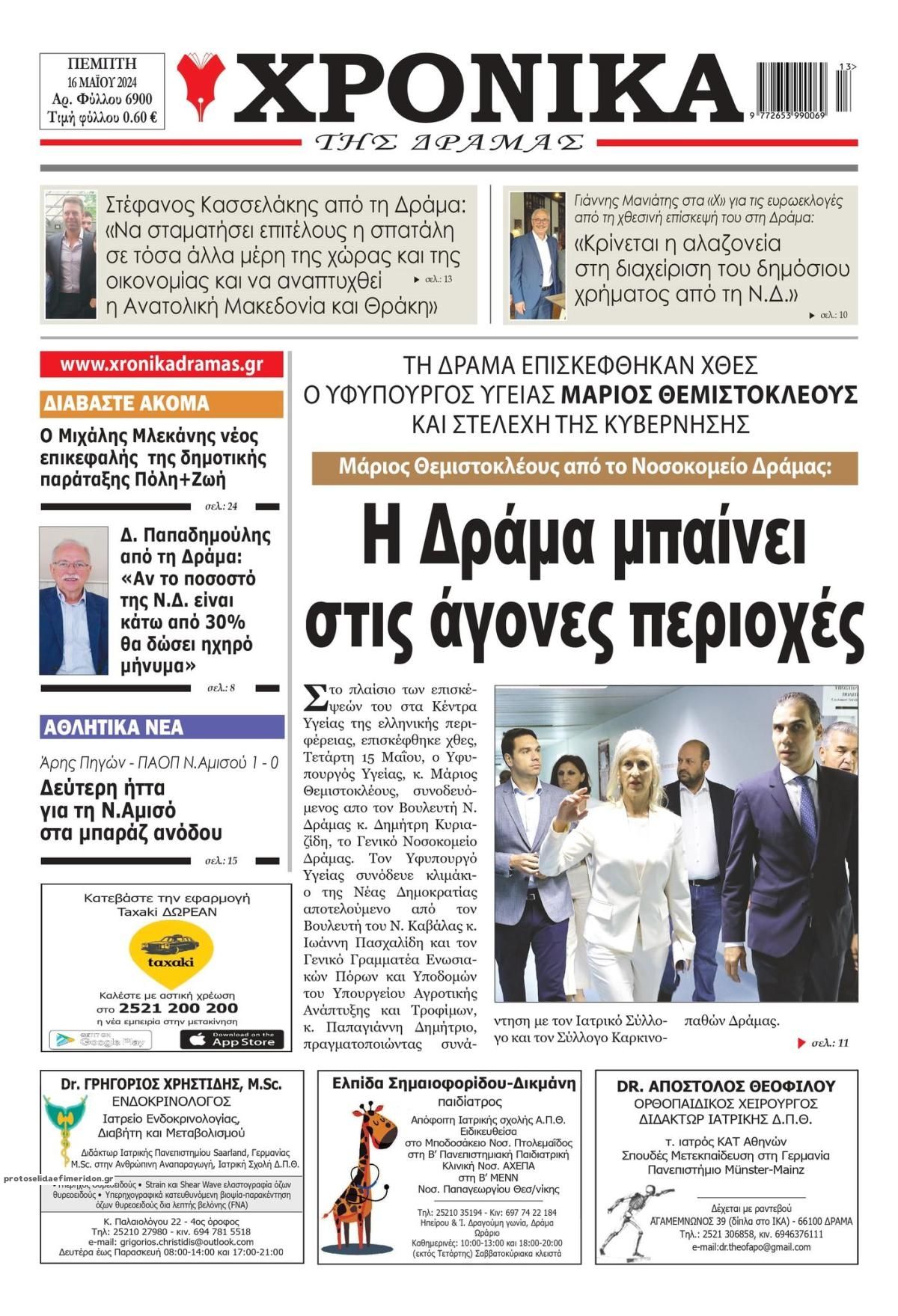 Διαβάστε το πρωτοσέλιδο της εφημερίδας Χρονικά Δράμας