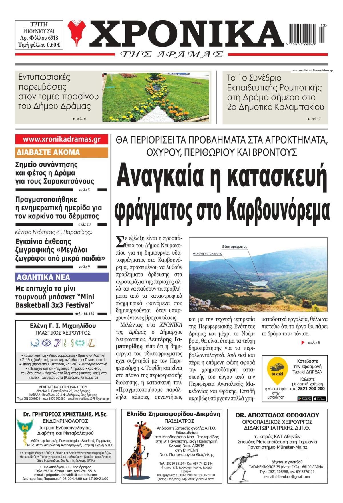 Διαβάστε το πρωτοσέλιδο της εφημερίδας Χρονικά Δράμας