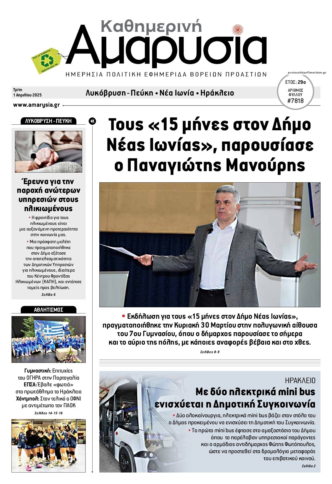 Διαβάστε το πρωτοσέλιδο της εφημερίδας Αμαρυσία