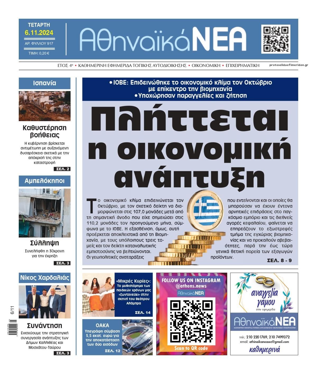 Διαβάστε το πρωτοσέλιδο της εφημερίδας Αθηναϊκά Νέα