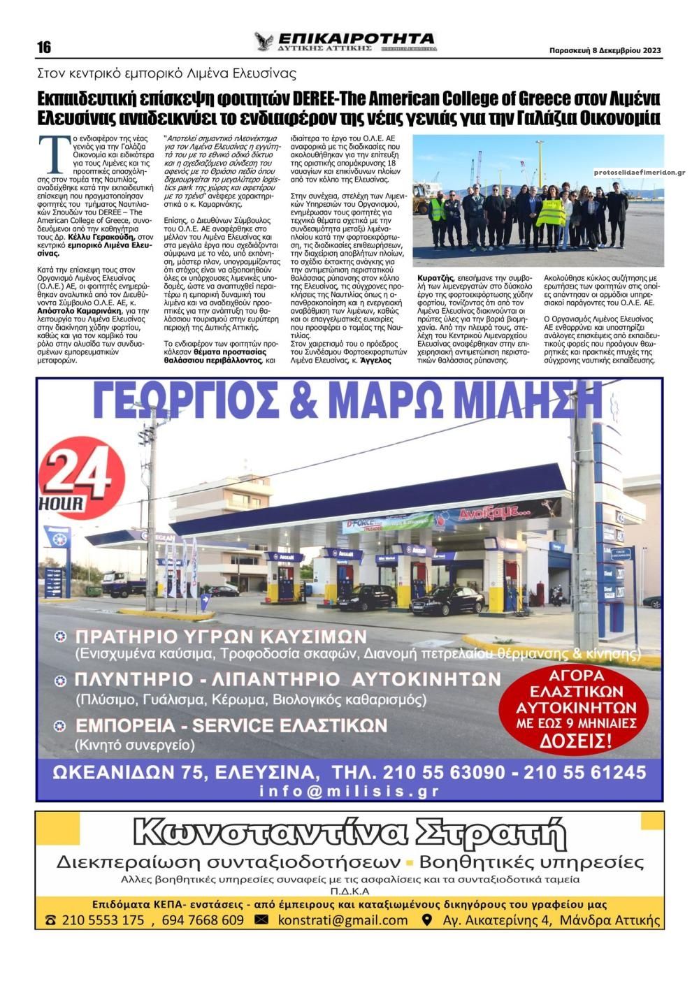 Διαβάστε το πρωτοσέλιδο της εφημερίδας Επικαιρότητα Δ. Α.