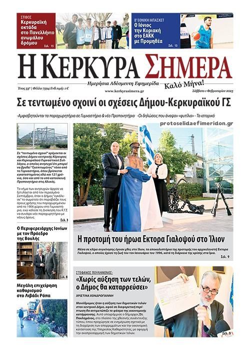 Διαβάστε το πρωτοσέλιδο της εφημερίδας Η Κέρκυρα Σήμερα