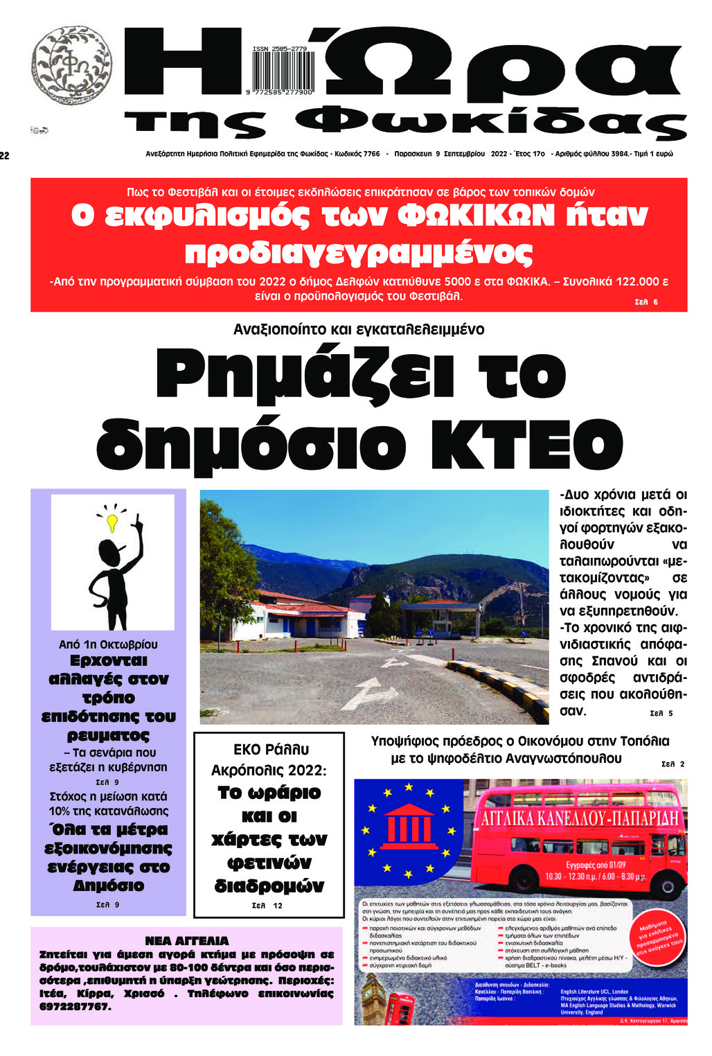 Διαβάστε το πρωτοσέλιδο της εφημερίδας Η Ώρα της Φωκίδας