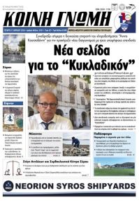 Διαβάστε το πρωτοσέλιδο της εφημερίδας Κοινή Γνώμη Κυκλάδων