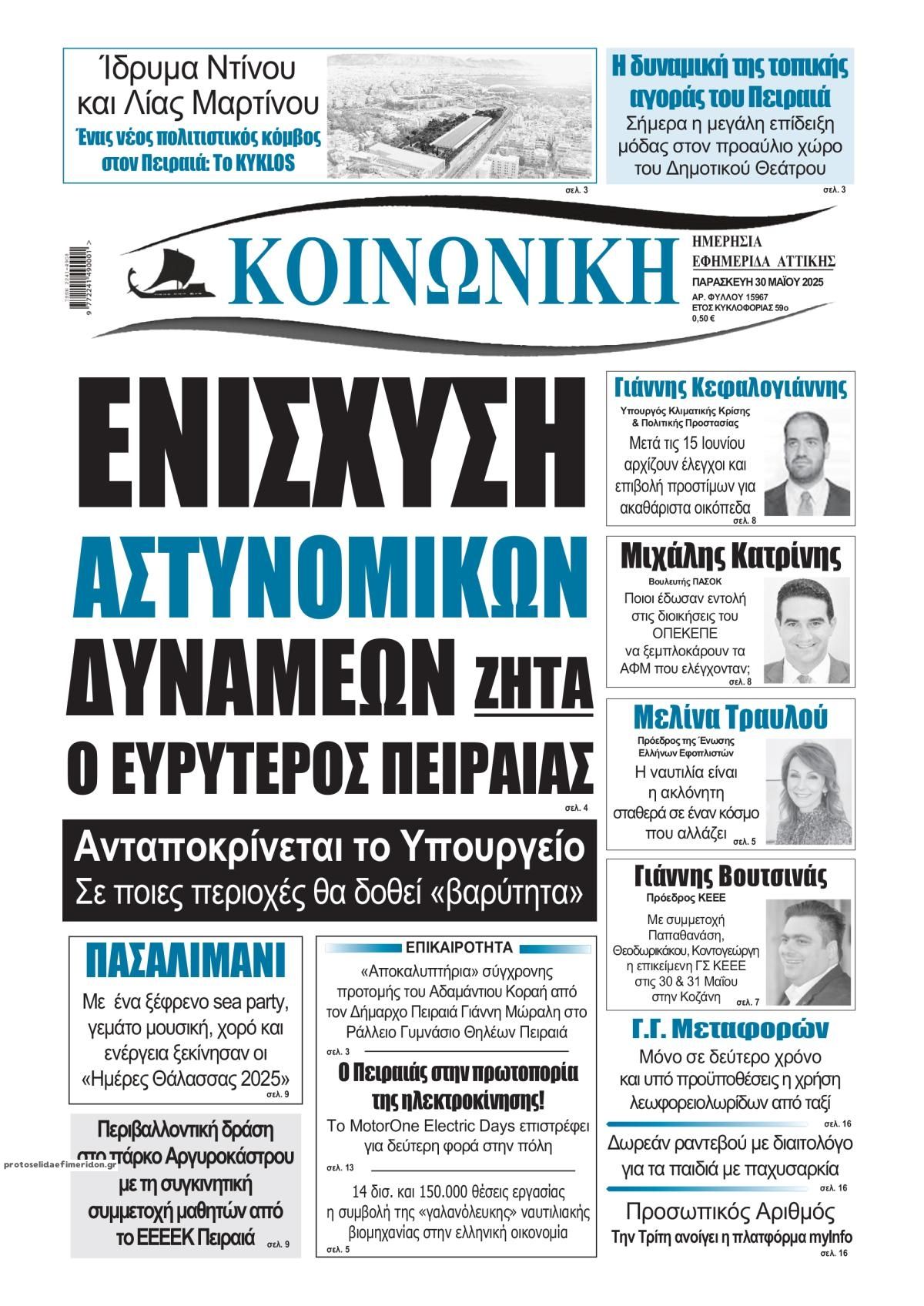 Διαβάστε το πρωτοσέλιδο της εφημερίδας Κοινωνική
