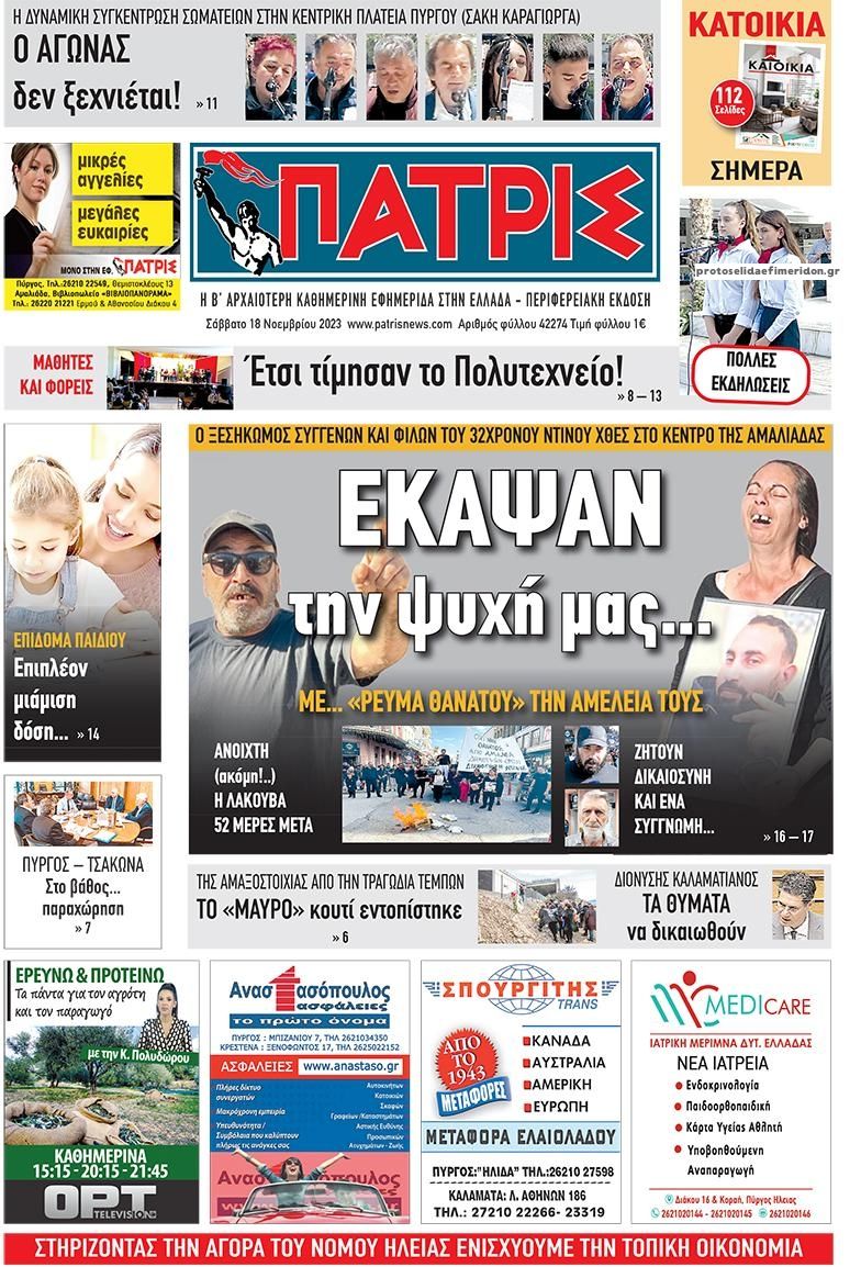 Διαβάστε το πρωτοσέλιδο της εφημερίδας Πατρις Ηλείας